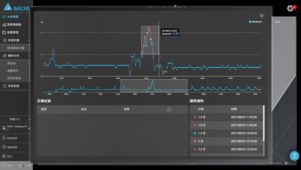 With DeltaGrid® EM solution, abnormal power consumption can be captured, and actionable energy-saving opportunities can be identified as the target of optimization. When big data continues to accumulate, in the future, Cyntec will better train the AI system to detect abnormal accurately, and leverage it to set carbon reduction targets to achieve its goal of reducing carbon emissions.