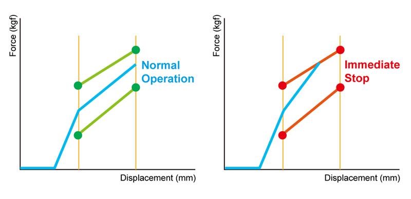 - Real-Time Monitoring with Pre-Set Peak Values: Sets peak values for pressing force, speed, and slope based on customers’ own know-how, while simultaneously monitoring component conditions and incoming materials quality throughout the operation. Any anomaly triggers an immediate stop, preventing defects from entering downstream processes.