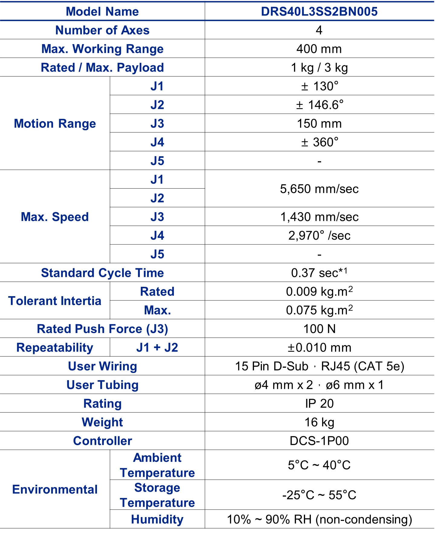 *1. When carrying a payload of 1 kg and reciprocating 25 mm in vertical and 300 mm in horizontal directions under an operating temperature of 25 ºC and within a humidity of 45 ~ 65 % RH (non-condensing).