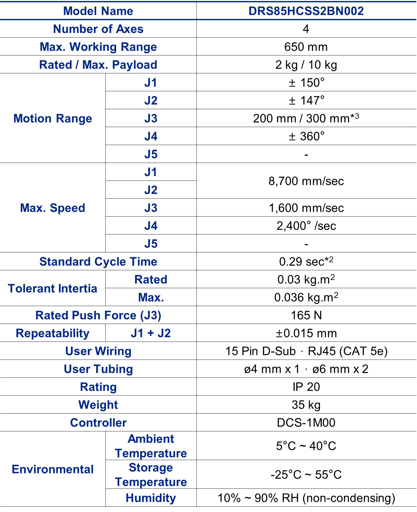 *2. When carrying a payload of 2 kg and reciprocating 25 mm in vertical and 300 mm in horizontal directions under an operating temperature of 25 ºC and within a humidity of 45 ~ 65 % RH (non-condensing).