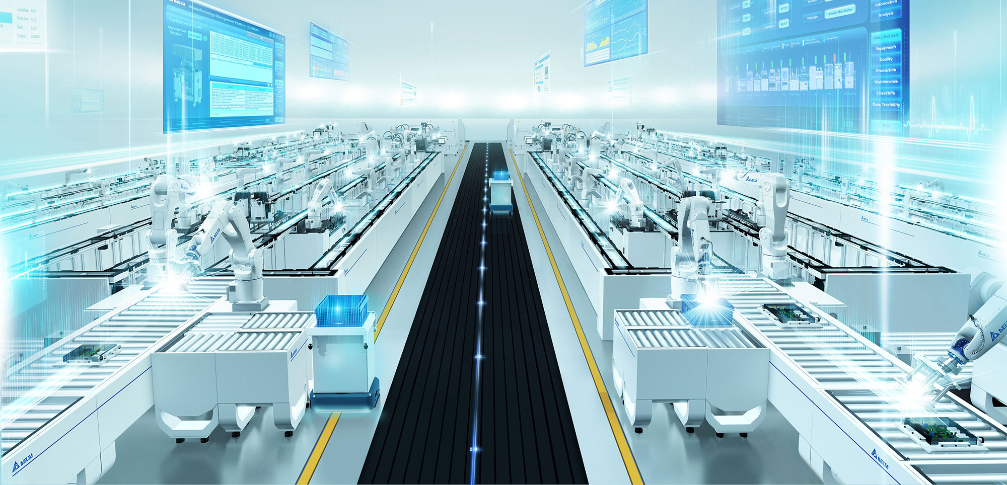 台達以先進自動化技術和製造經驗,打造貫穿工廠、生產、設備的智造模式,透過數位化、可視化、自動化,靈活實現標準化、少量多樣、客製化生產,以智能製造實現創變新未來