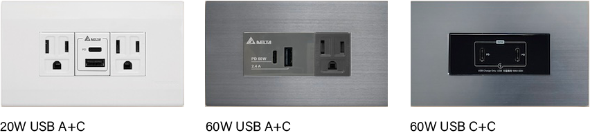 60W USB-C+C PD充電插座搭配不同面板