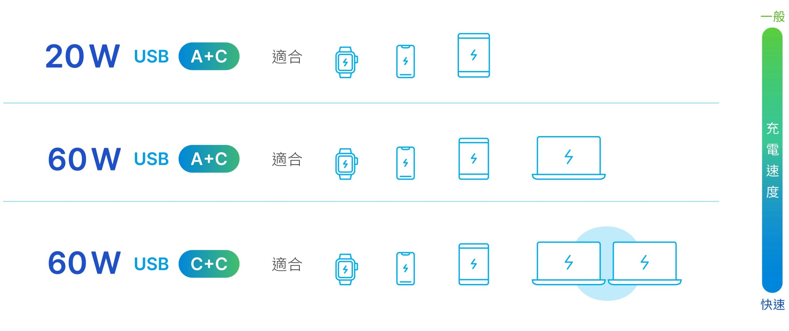 搭載 USB-A 和 -C 雙孔輸出,最大功率達 60 W