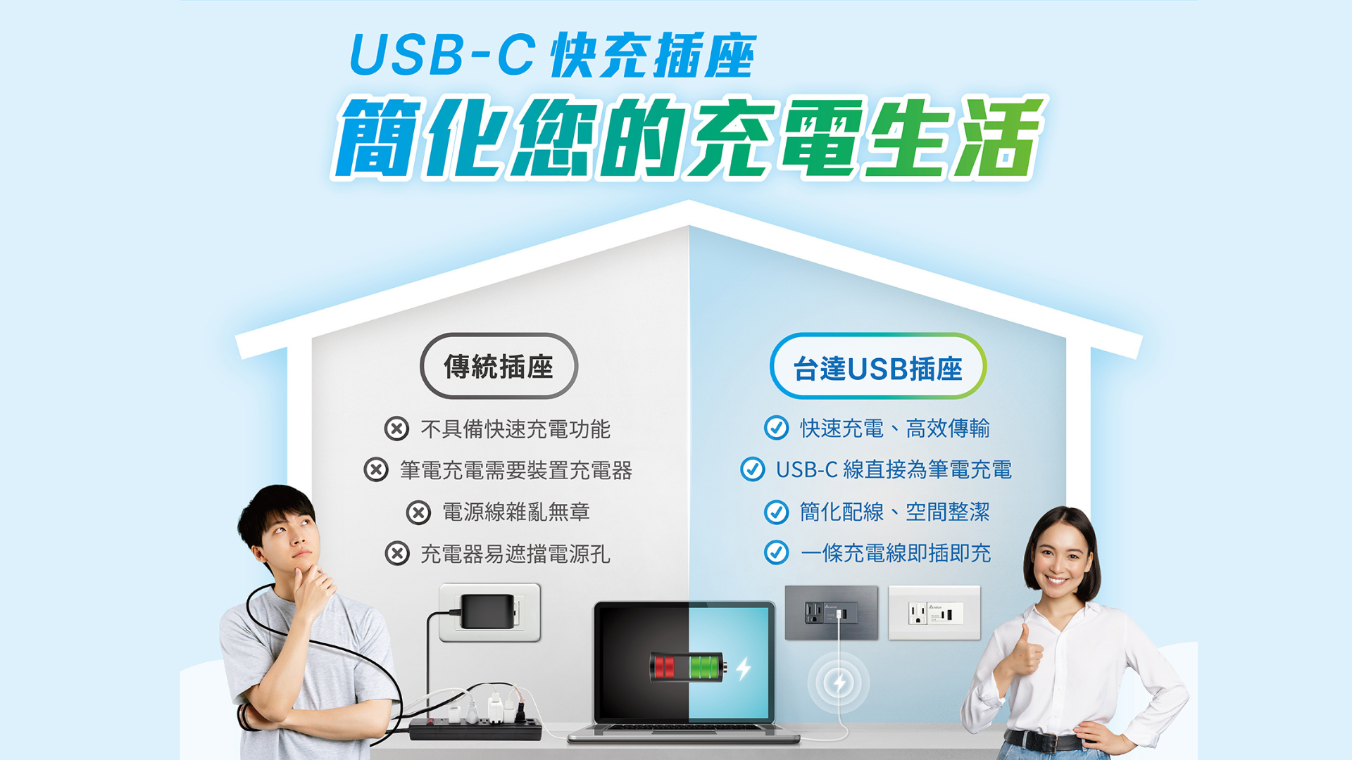 免去 USB 充電器及筆電充電器,實現節能環保