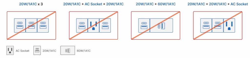 60W USB-A+C PD充電插座搭配不同面板
